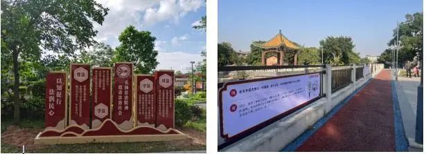 新会区依托“百县千镇万村高质量发展工程”的镇村布局,构建全域覆盖、立体多元的“区-镇-村”三级普法网络。全区11 个镇(街)均设立公共法律服务工作站,作为普法联动平台;以各行政村和社区为单位,建成235个公共法律服务工作室,打通普法工作“最后一公里”,推动普法资源下沉。精心打造基层法治景观,融入美丽乡村建设,建设沙堆沙西村法治乡道、古井鹅村法治研学基地以及三江深吕村法治文化公园,打造村民“家门口”学法园地,形成遵循法治、崇尚法治的乡村文化氛围。在全国民主法治示范村大鳌东风村建立新会区首个村级民主法治宣传教育实践基地,树立乡村法治阵地标杆,实现示范引领、中心带动、多点辐射的城乡阵地宣传架构。全区各村(社区)利用宣传栏、文化墙,将法律条文与村规民约、乡风文明结合,形成“出门见法、休闲学法”的良好学法氛围。